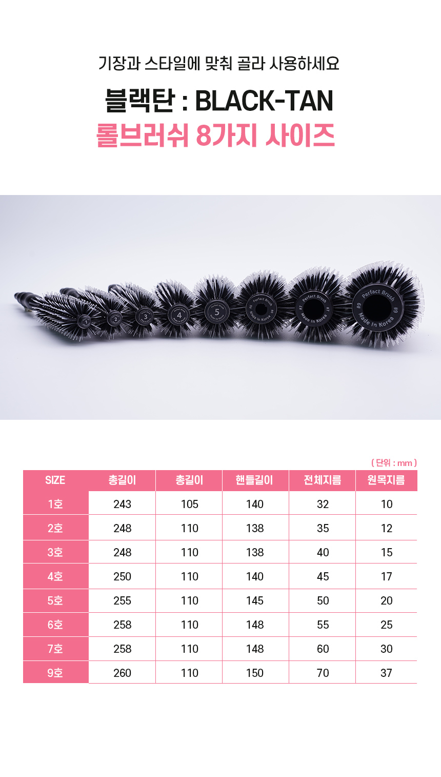 블랙탄 롤브러쉬 롤빗 대왕롤빗 뿌리 볼륨