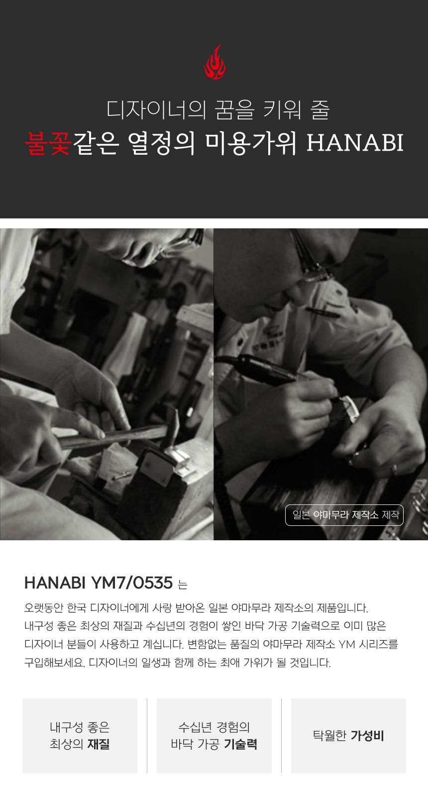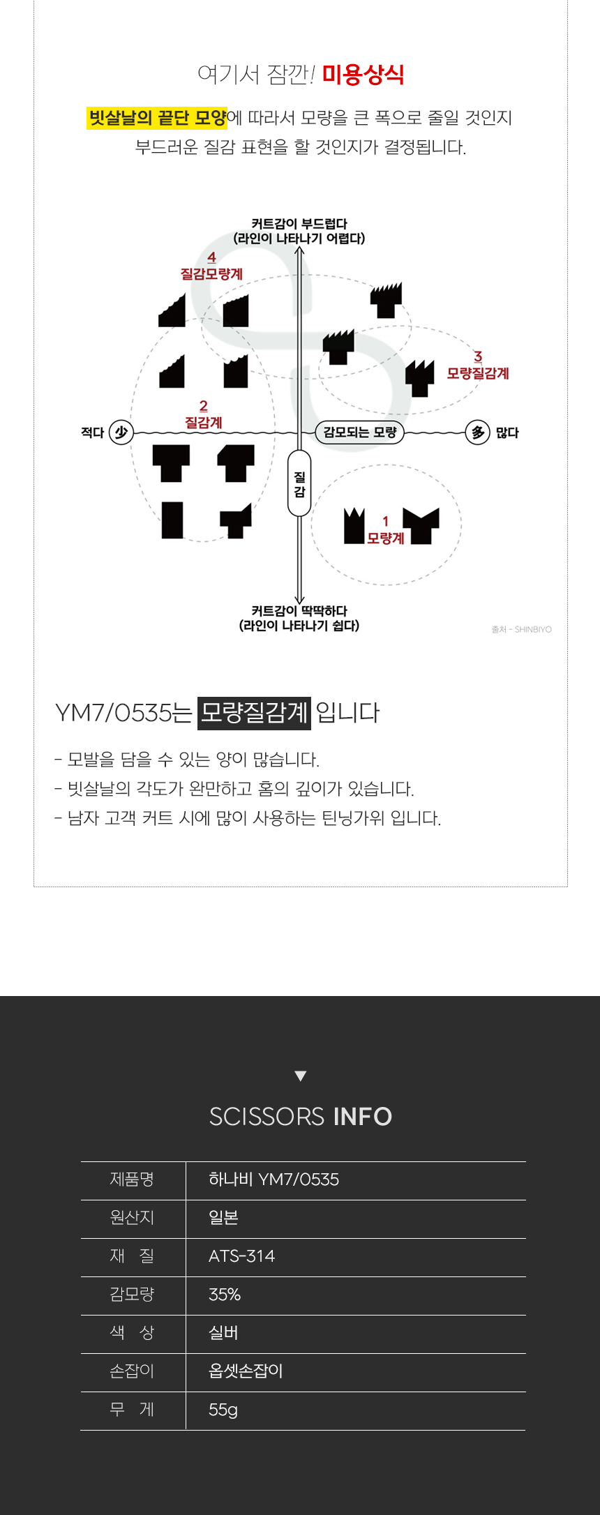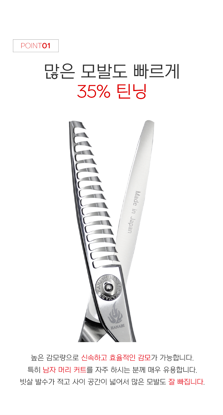 [HANABI YM7/0535] 하나비 전문가용 미용 틴닝 가위 요술가위 5홈16발(35%)