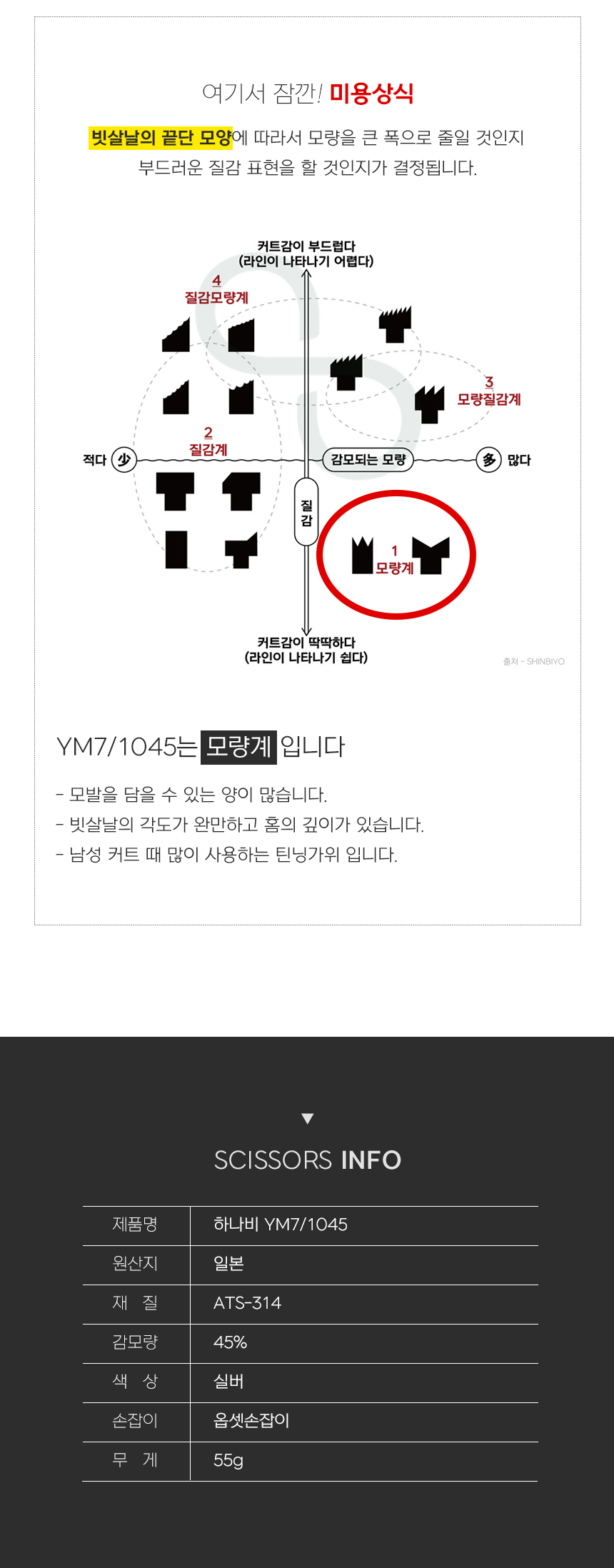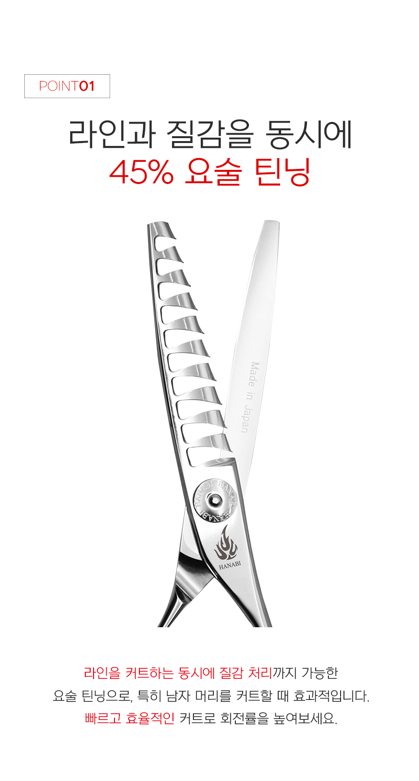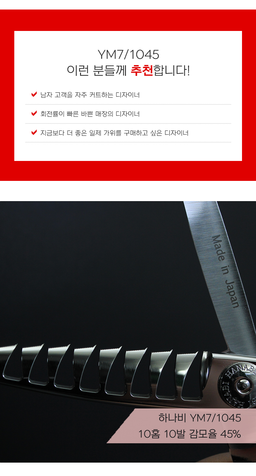 [HANABI YM7/1045] 하나비 전문가용 미용 틴닝 텐텐 요술 가위 10홈10발(45%)