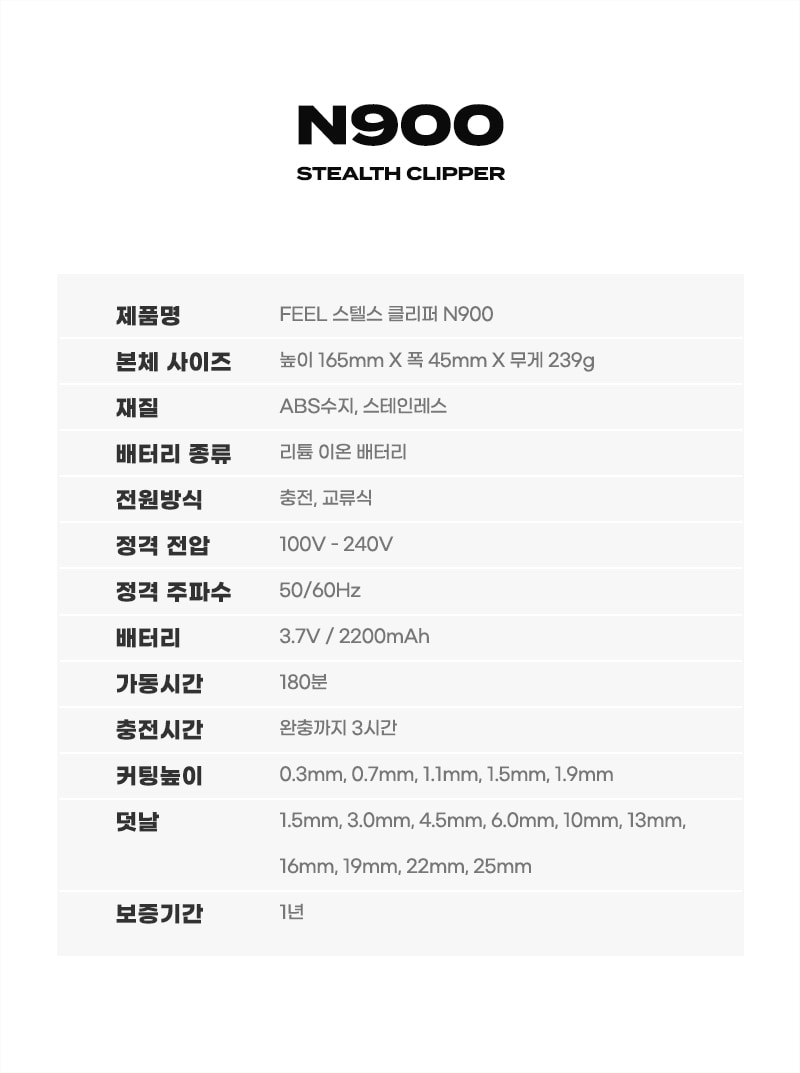 FEEL 필 스텔스 클리퍼 N900 바리깡 이발기 스마트 전문가용