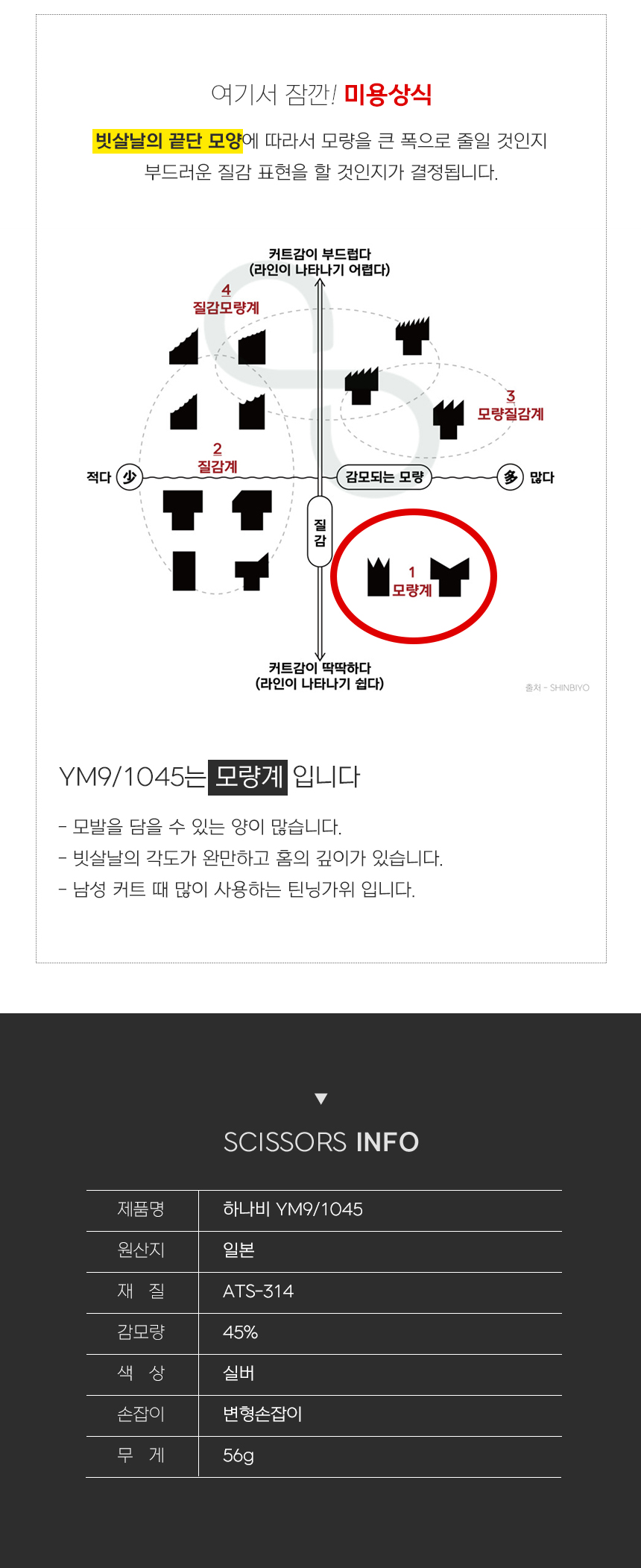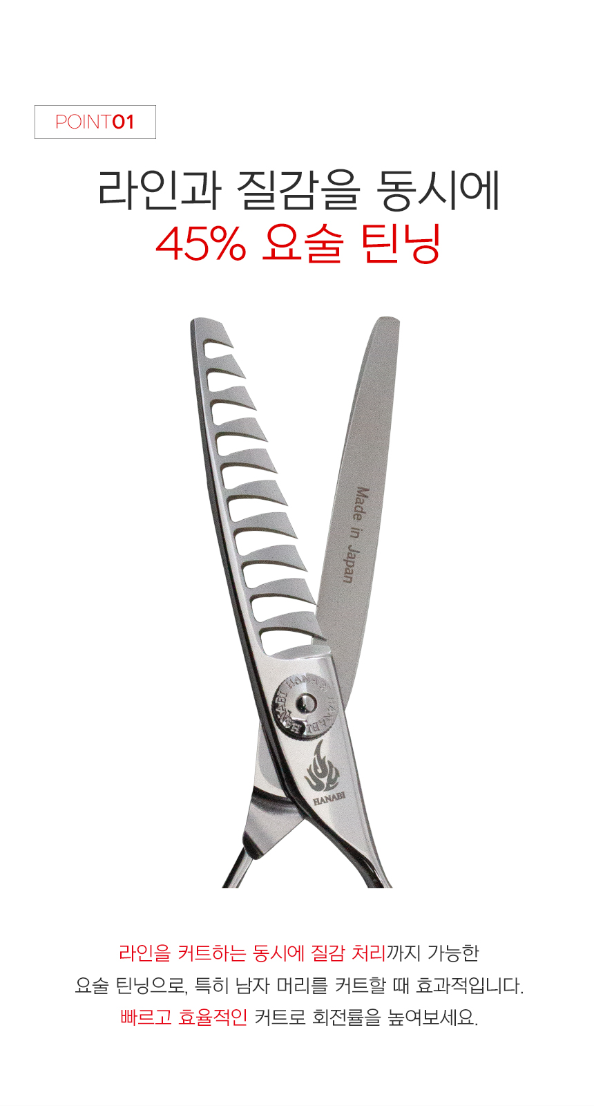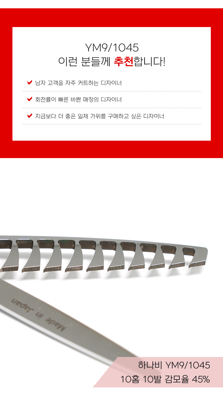 [HANABI YM9/1045] 하나비 전문가용 틴닝 텐텐 요술가위 10홈10발(45%)