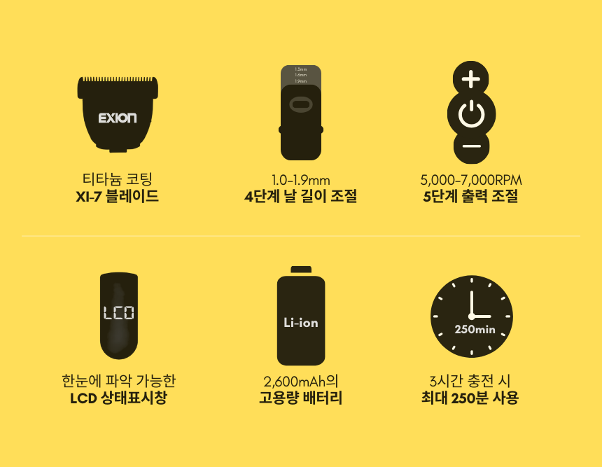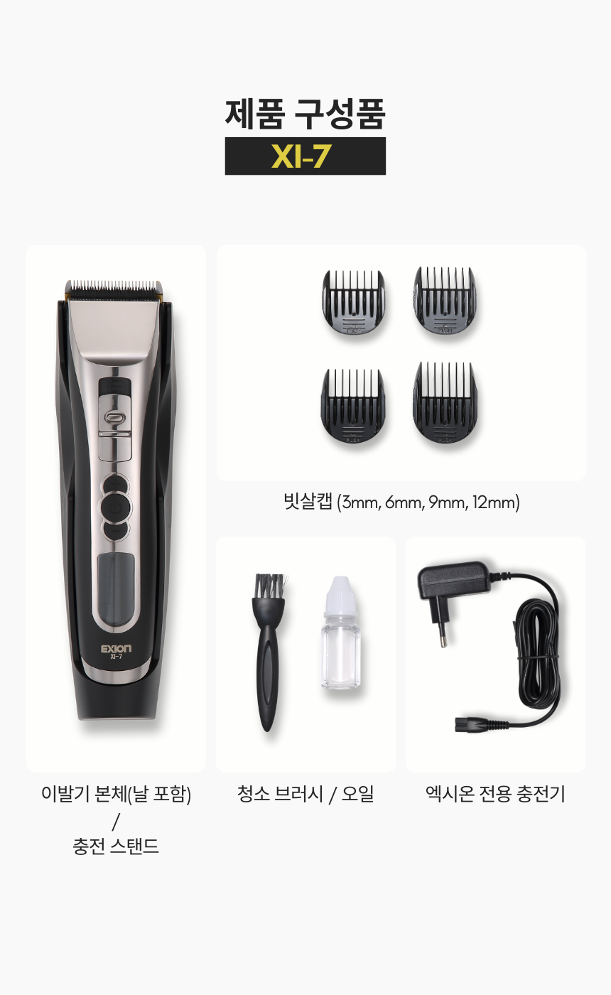 엑시온 XI-7 프로 스마트 5단 클리퍼 전문가용 바리깡 (+빗살캡 4종 세트)