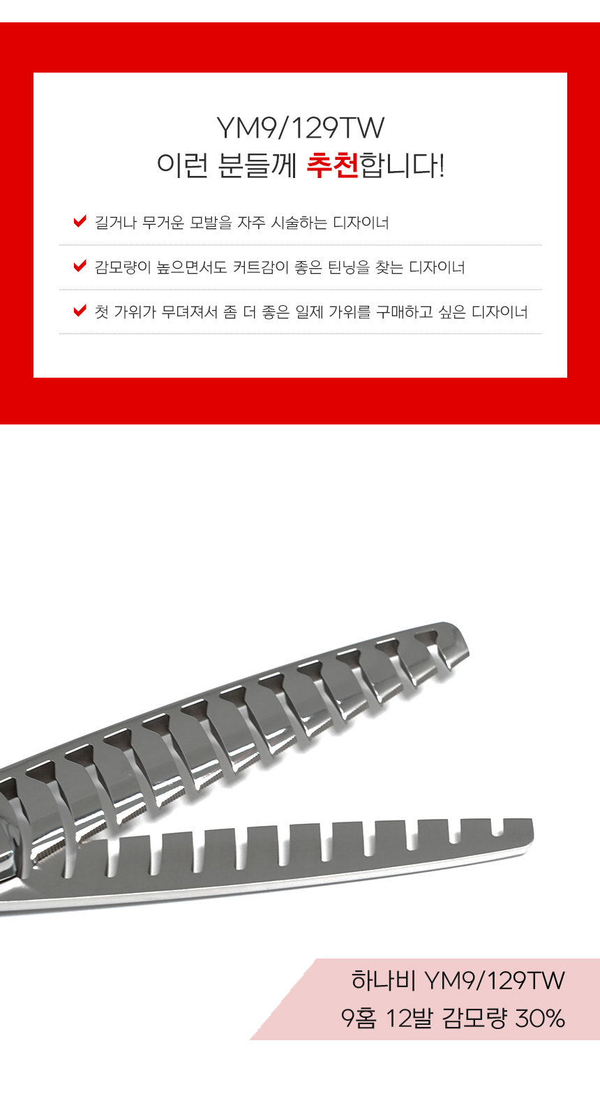 [HANABI YM9/129tw] 하나비 전문가용 양날 틴닝 가위 9홈12발(30%)