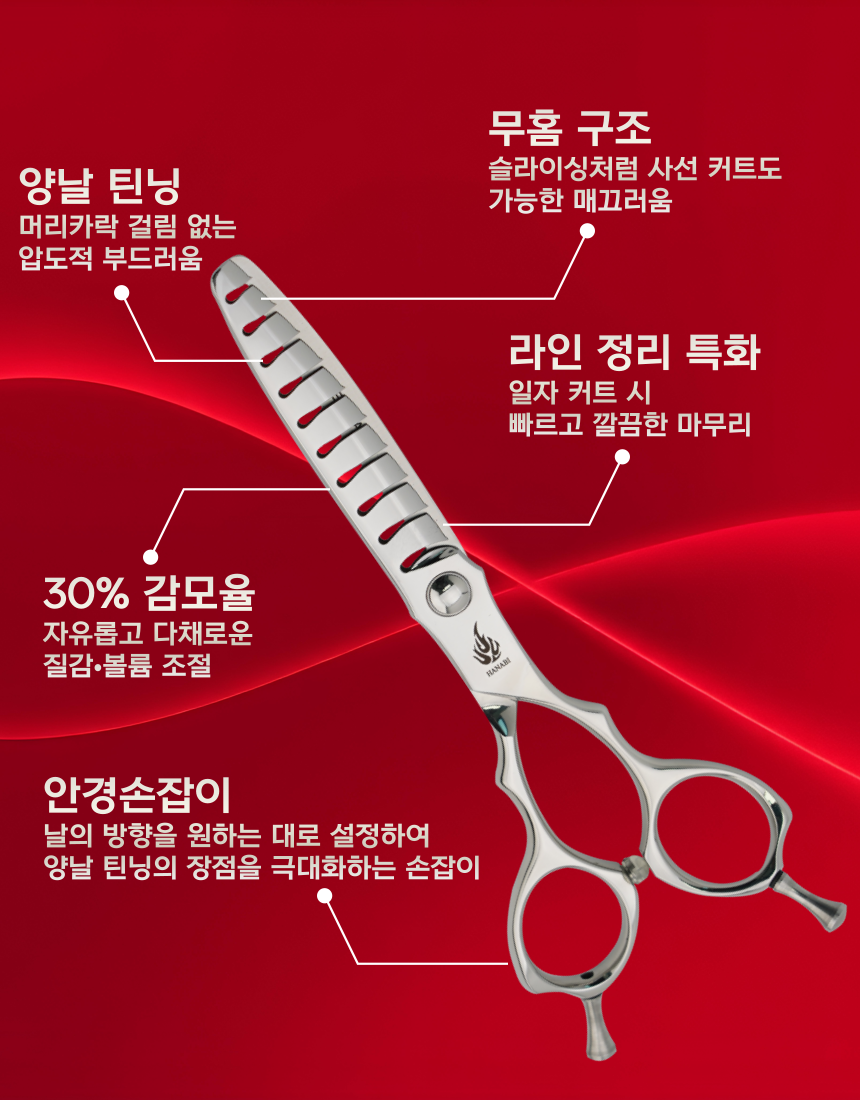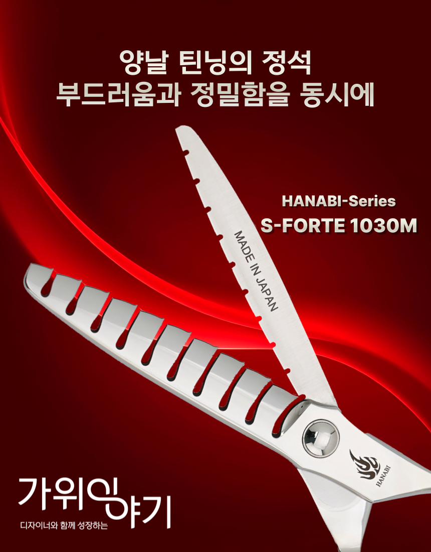 [HANABI S-FORTE/1030M]하나비 전문가용 미용가위 양날 무홈 틴닝 30%
