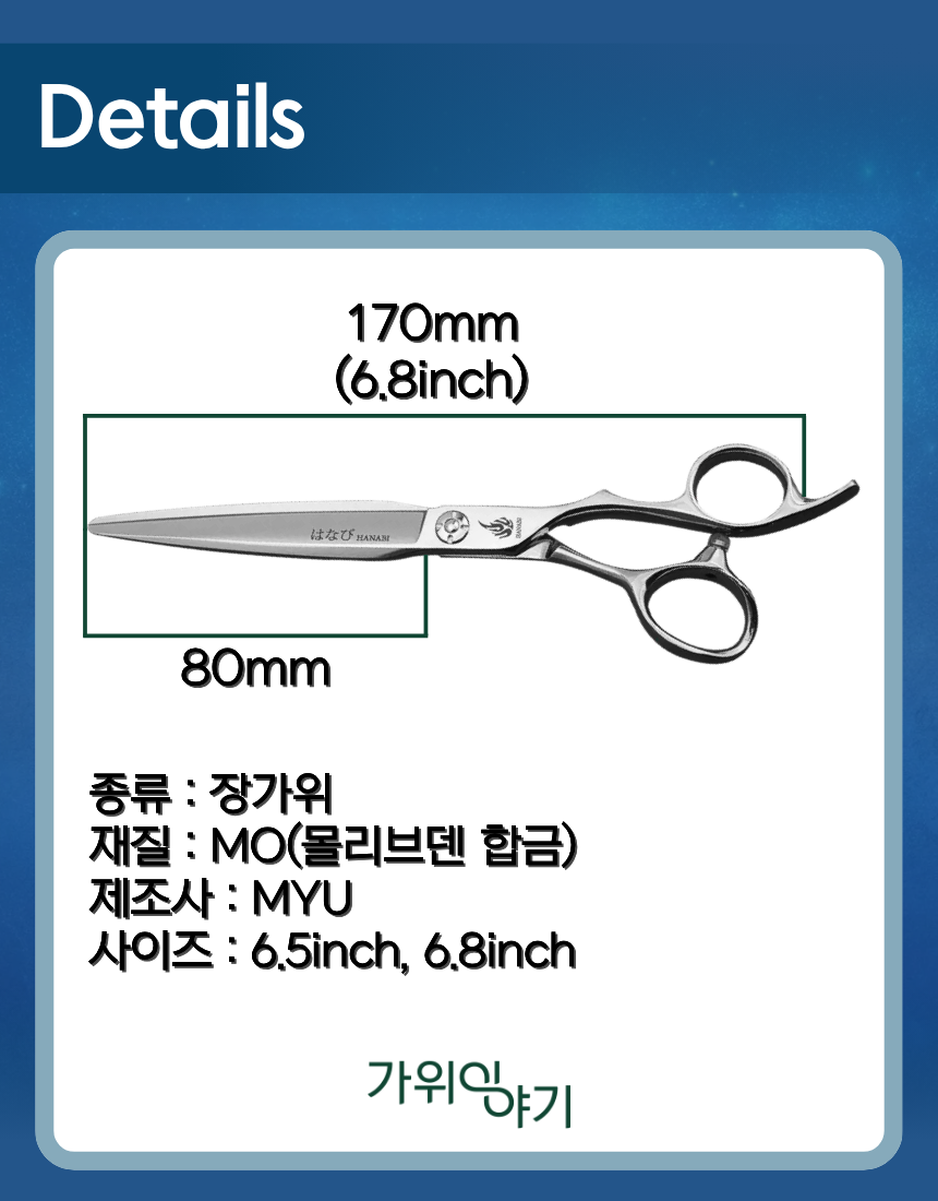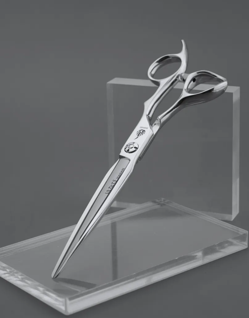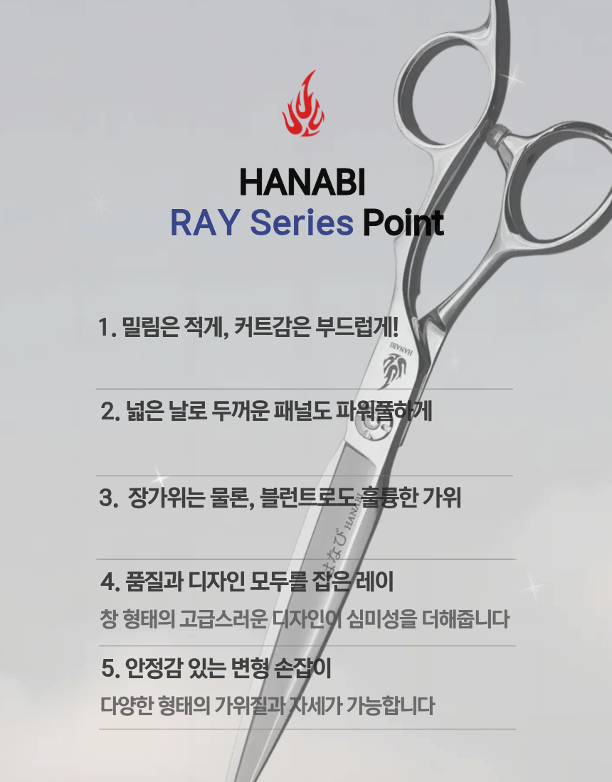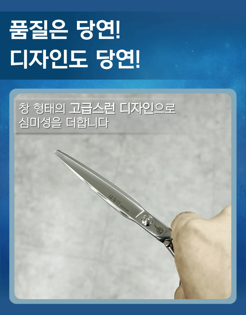 가오리를 닮은 넓고 묵직한 날로 두꺼운 패널도 파워풀하게 잘라버릴 수 있는 장가위입니다. 밀리지 않으면서도 부드러운 커트감이 특징입니다.