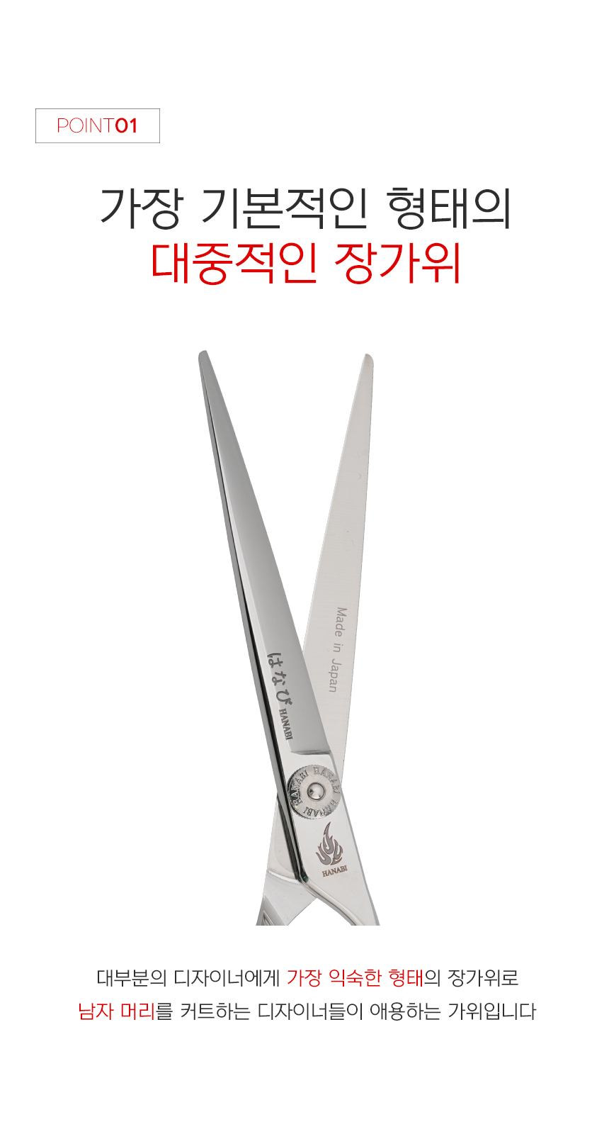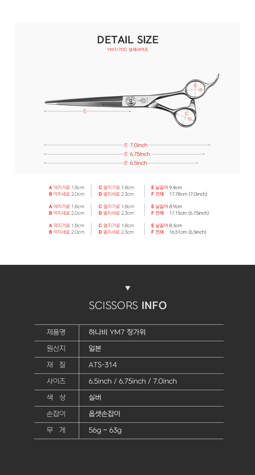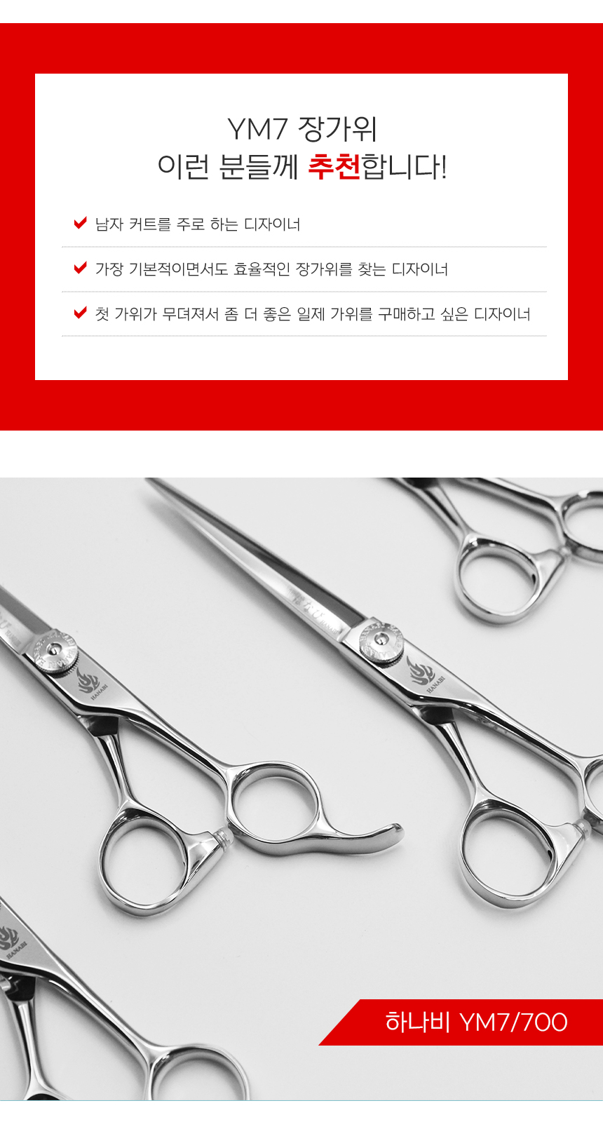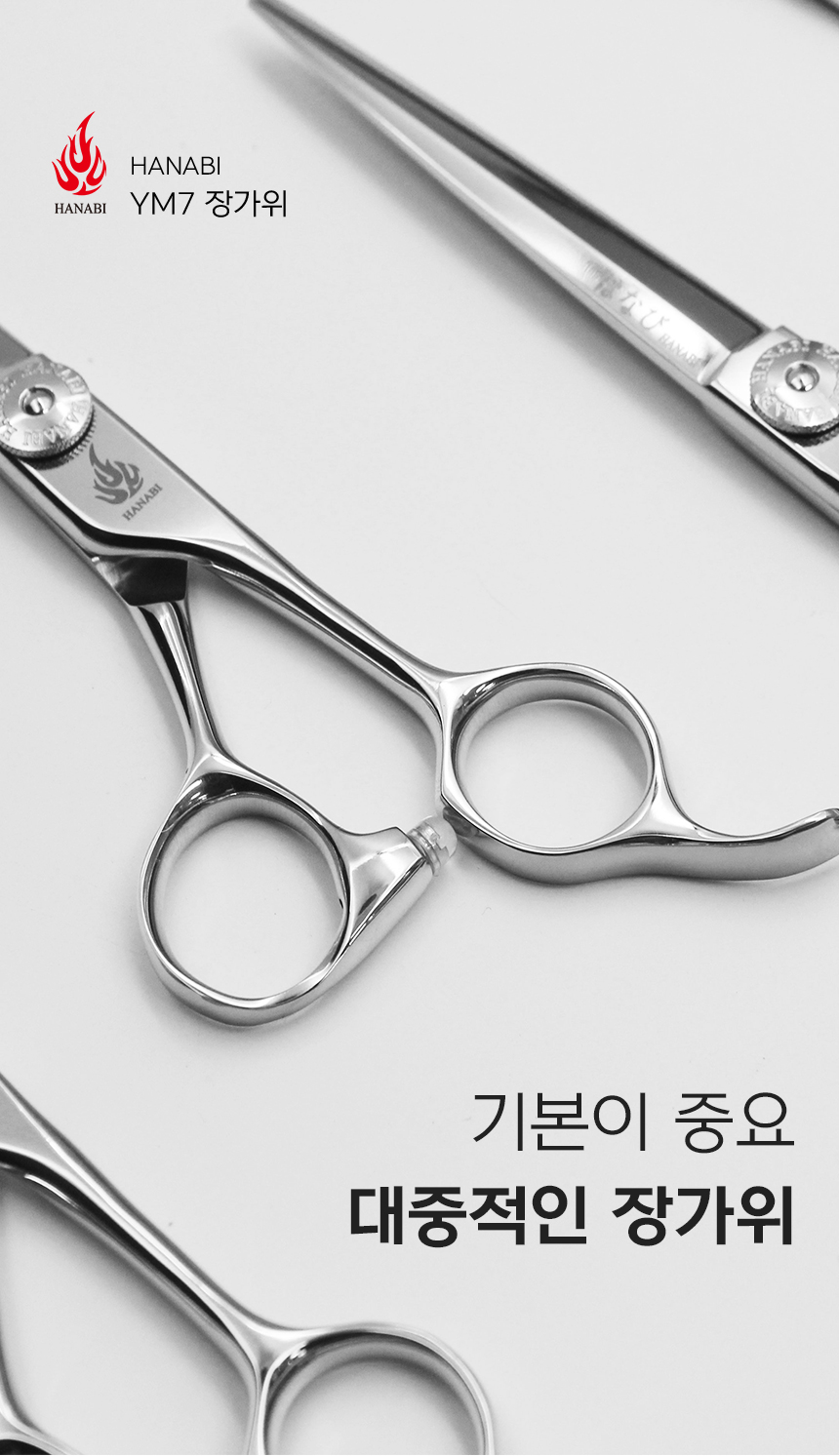 [HANABI YM7 장가위] 하나비 전문가용 일제 블런트 미용 장가위 6.5 - 7인치