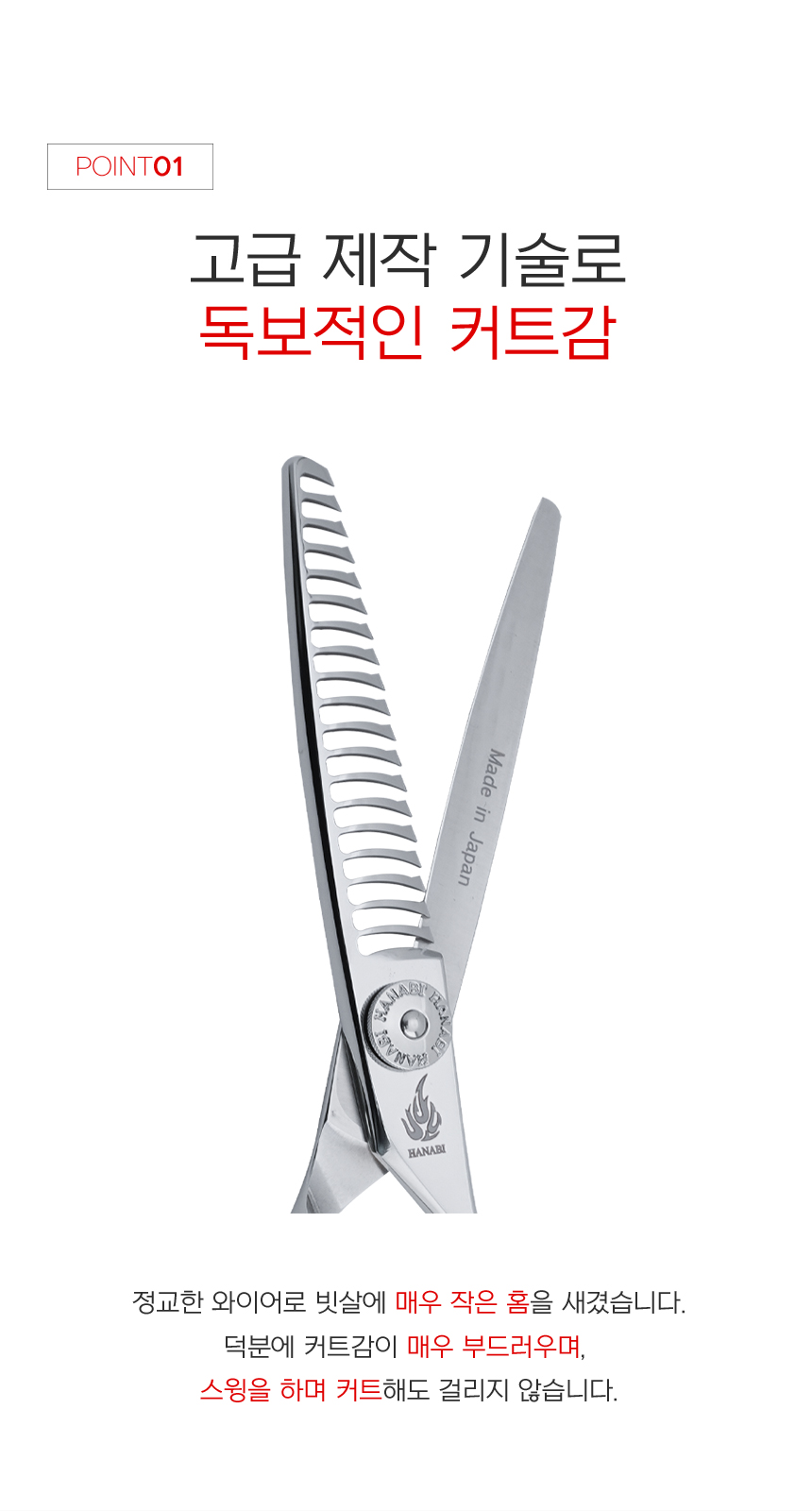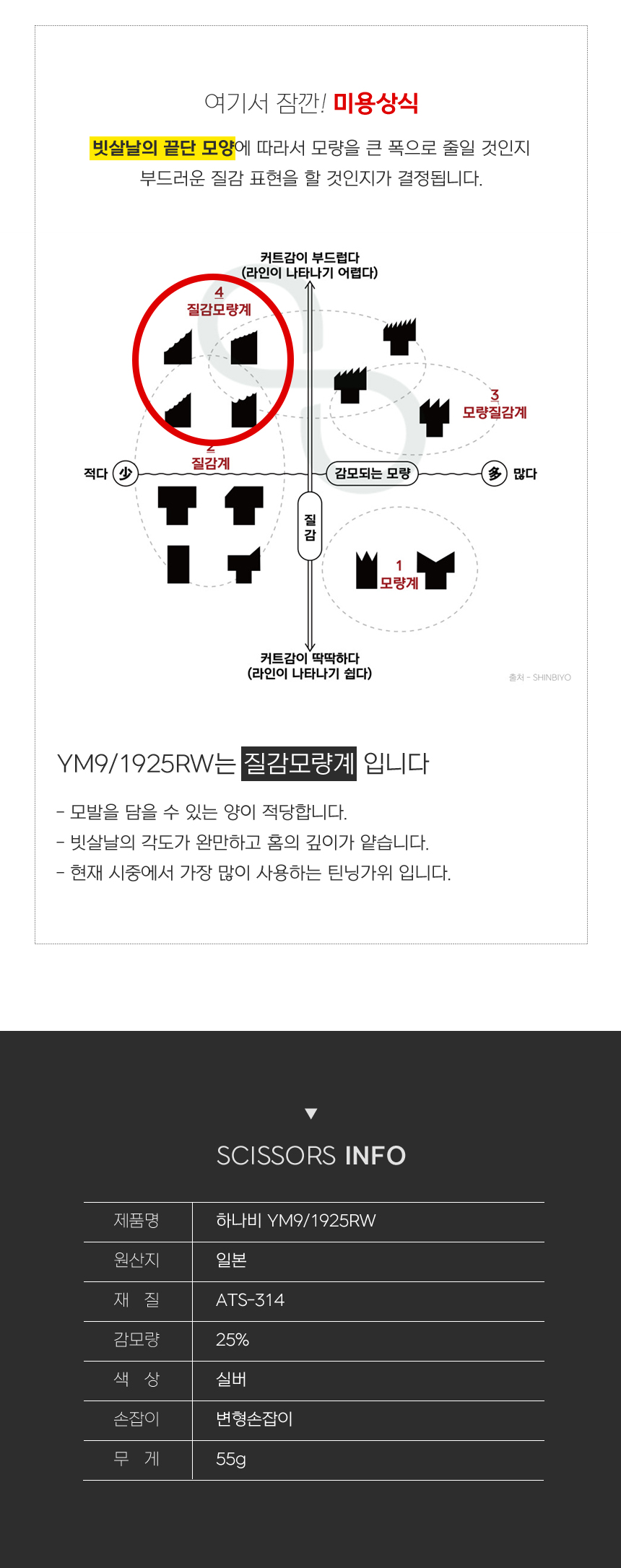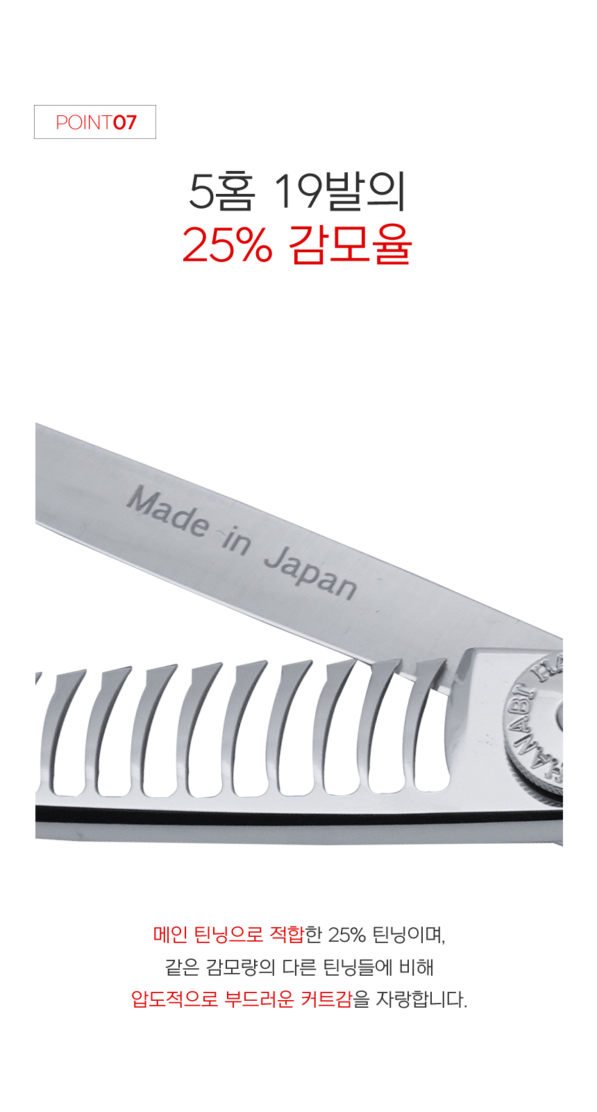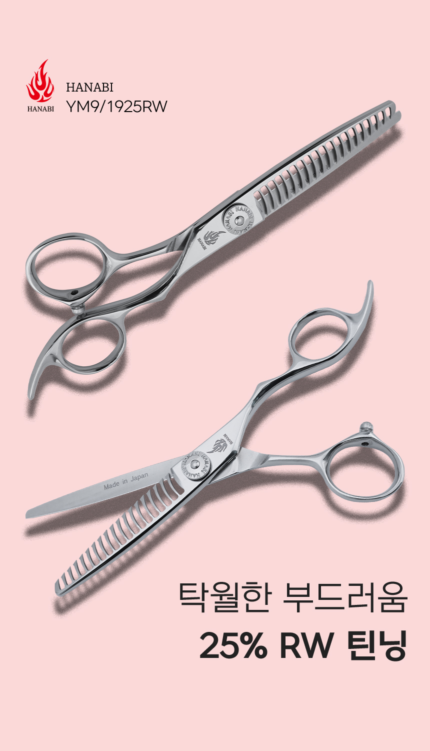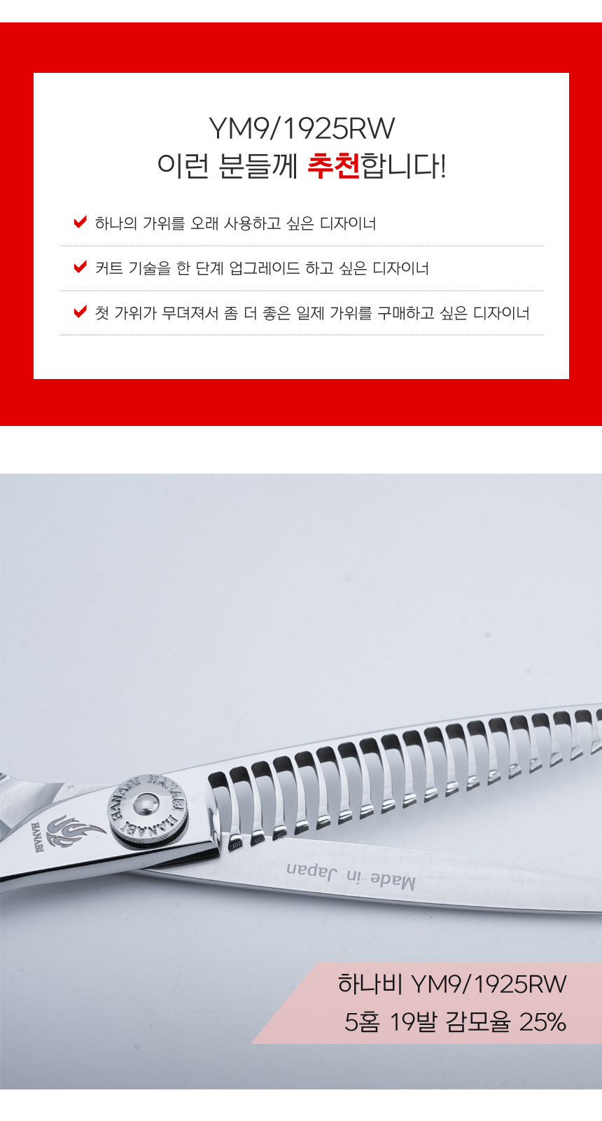 [HANABI YM9/1925RW] 하나비 전문가용 일제 미용 가위 틴닝 5홈19발(25%)