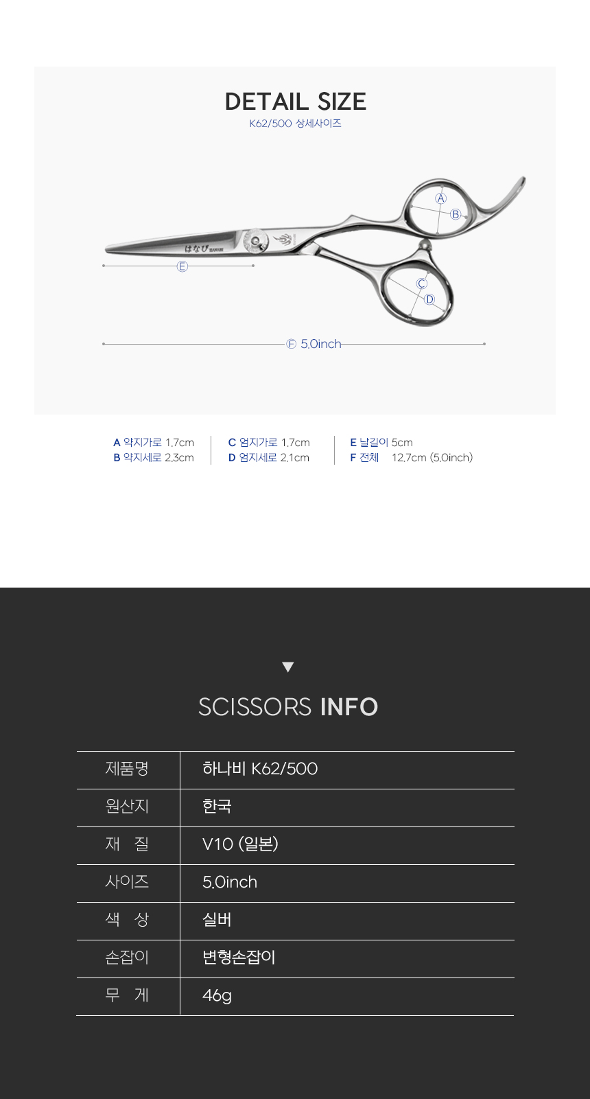 [HANABI K62/500] 하나비 전문가용 블런트 미용가위 5인치 숏가위
