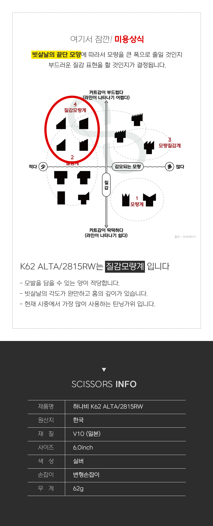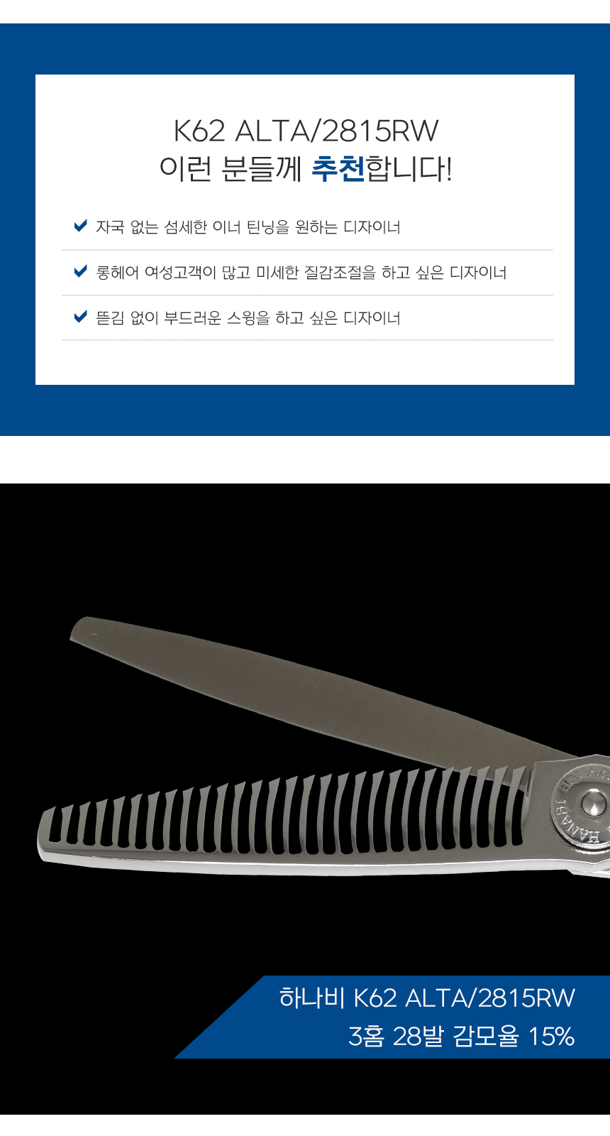[HANABI K62 ALTA/2815RW] 하나비 전문가용 미용 틴닝 가위 4홈28발(15%)
