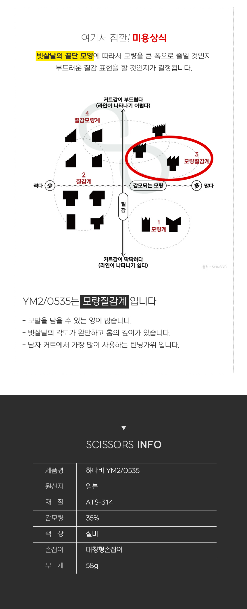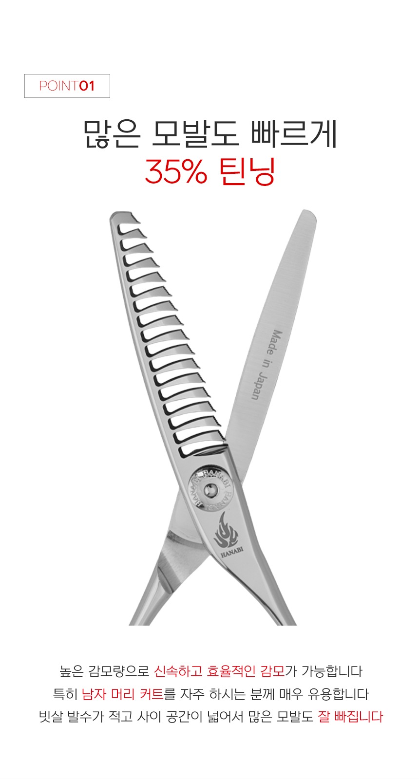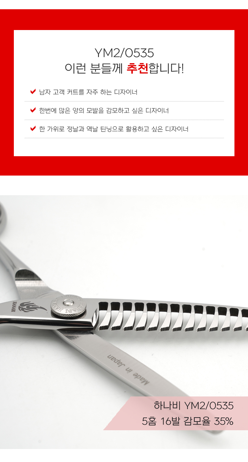 [HANABI YM2/0535]하나비 전문가용 일제 미용가위 요술 틴닝 5홈16발(35%)