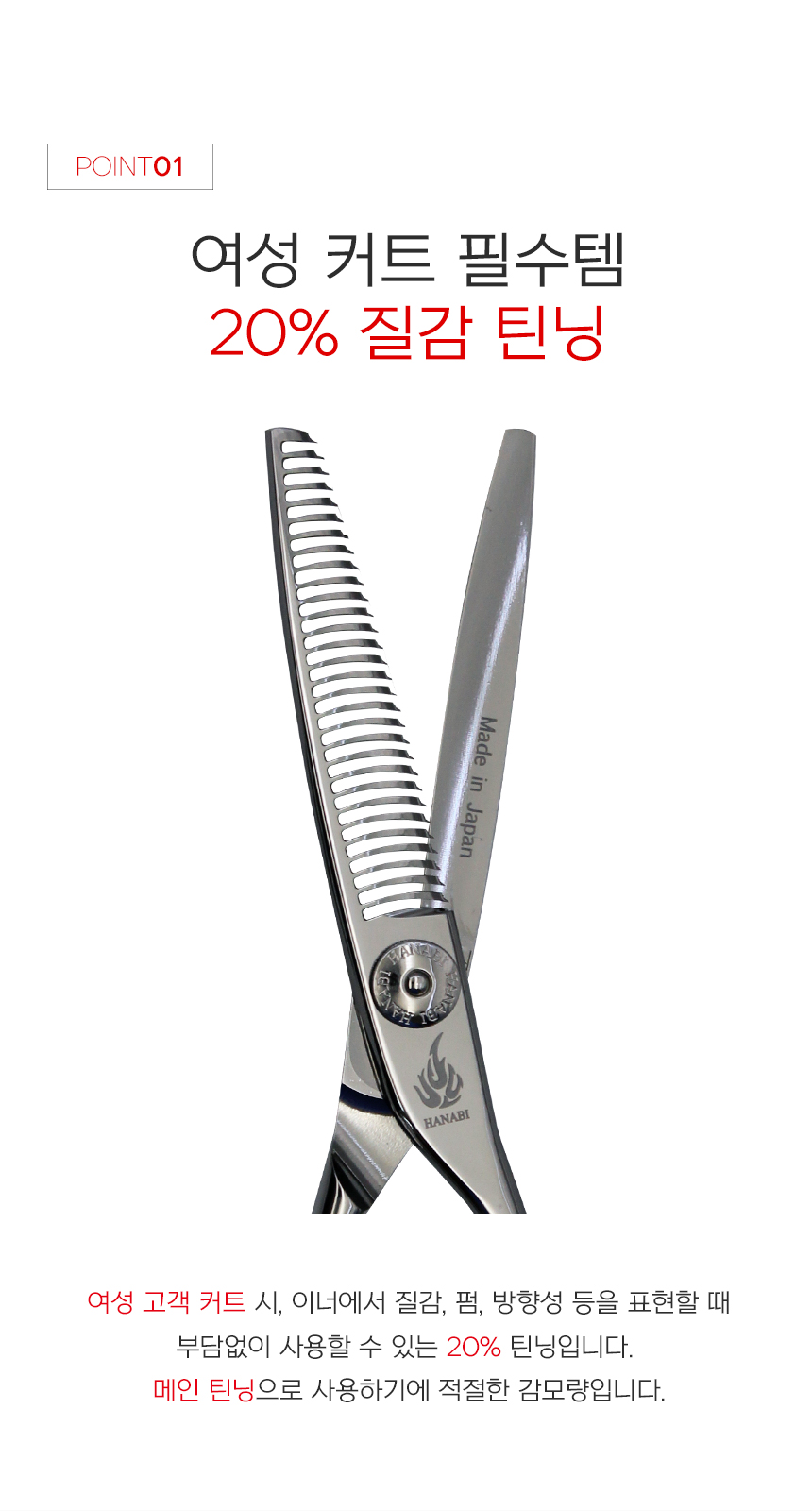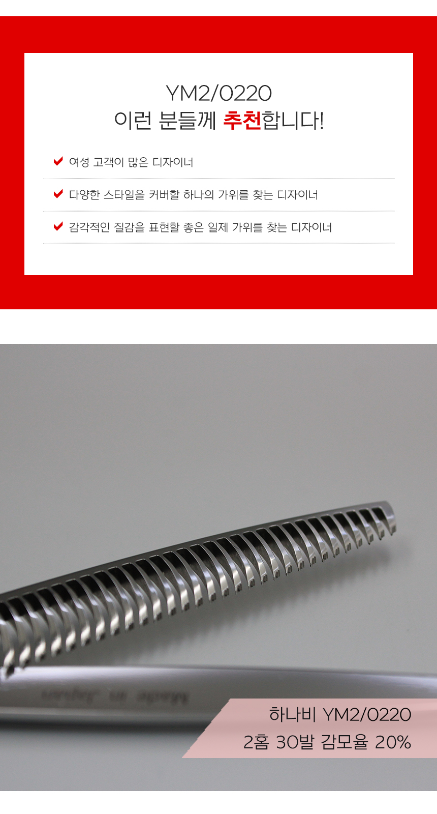 [HANABI YM2/0220]하나비 전문가용 일제 미용가위 남자 틴닝 2홈30발(20%)