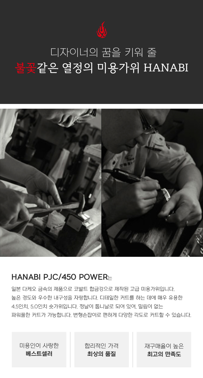 [HANABI PJC/Power] 하나비 전문가용 블런트 미용가위 5인치 톱니 숏가위