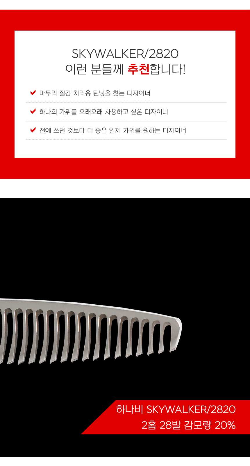 [HANABI SKYWALKER/2820] 하나비 전문가용 틴닝 미용가위 2홈 28발(20%)