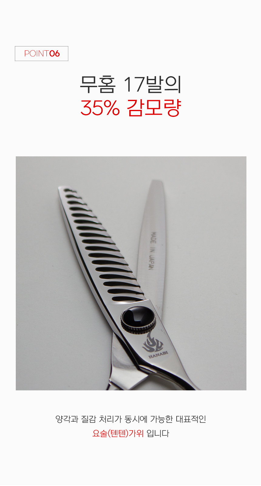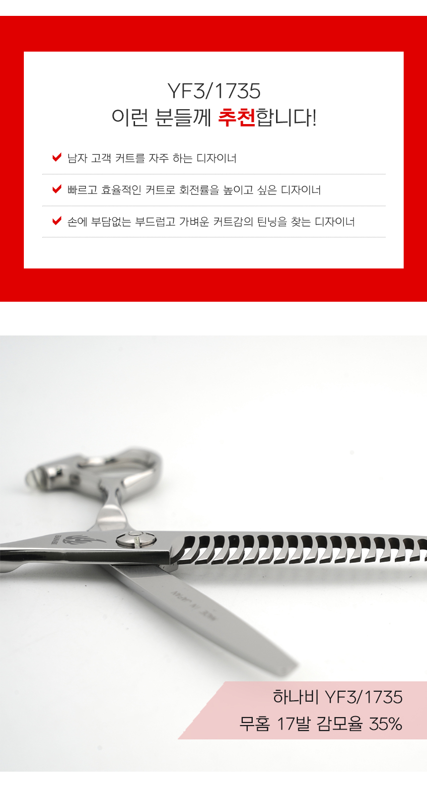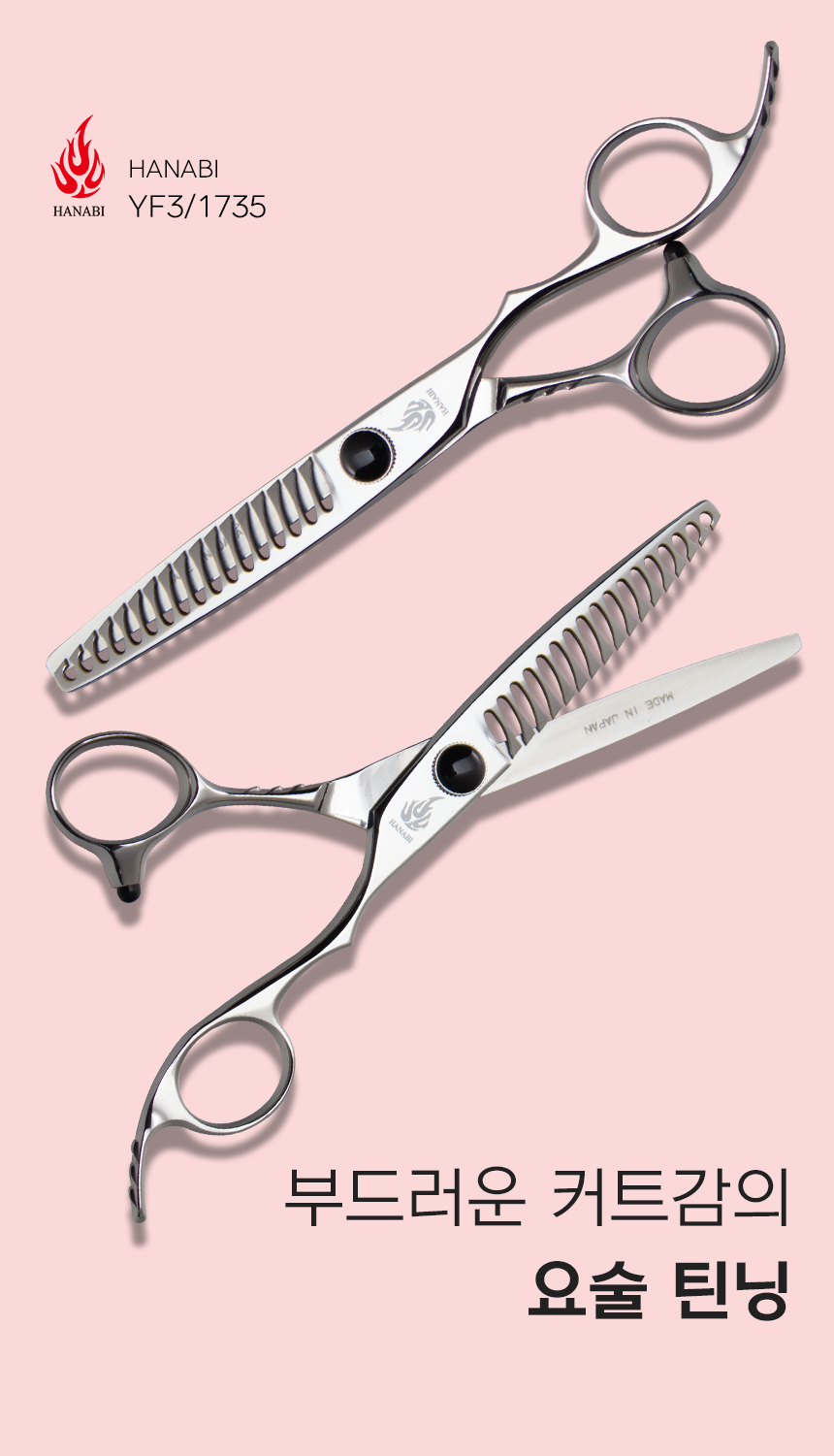 [HANABI YF3/1735] 하나비 전문가용 일제 미용 가위 틴닝 무홈17발(35%)