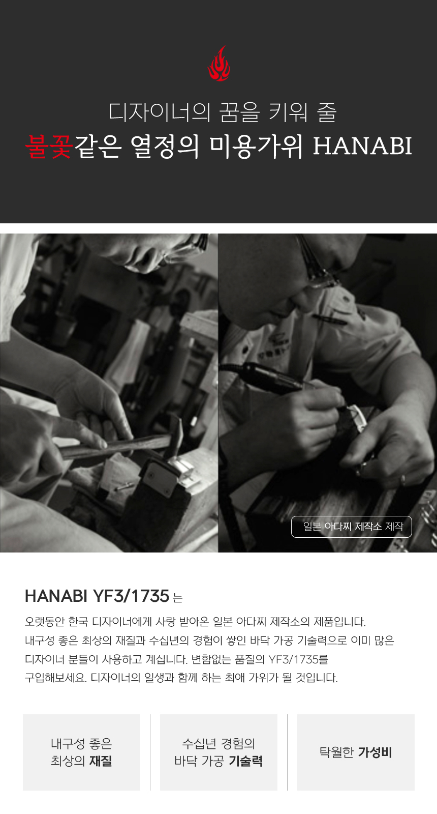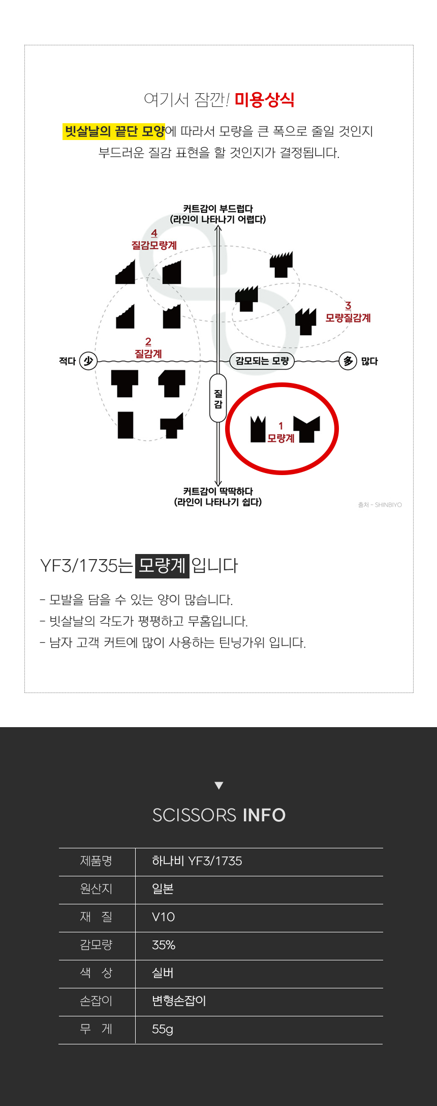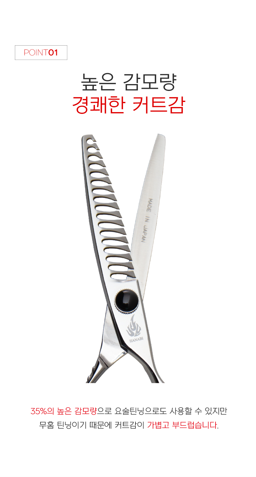 [HANABI YF3/1735] 하나비 전문가용 일제 미용 가위 틴닝 무홈17발(35%)