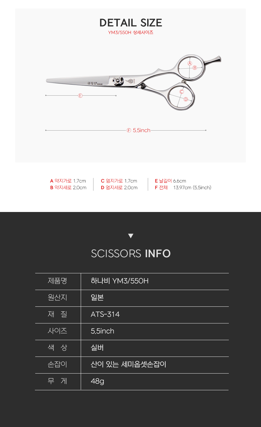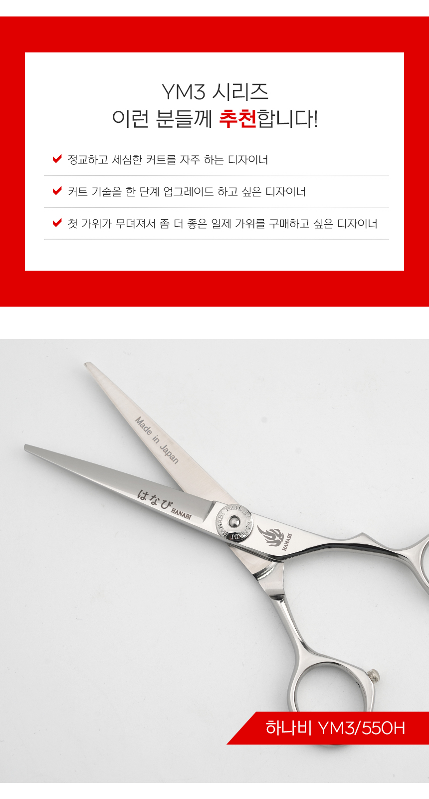 [HANABI YM3/550] 하나비 전문가용 일제 블런트 미용가위 5.5인치