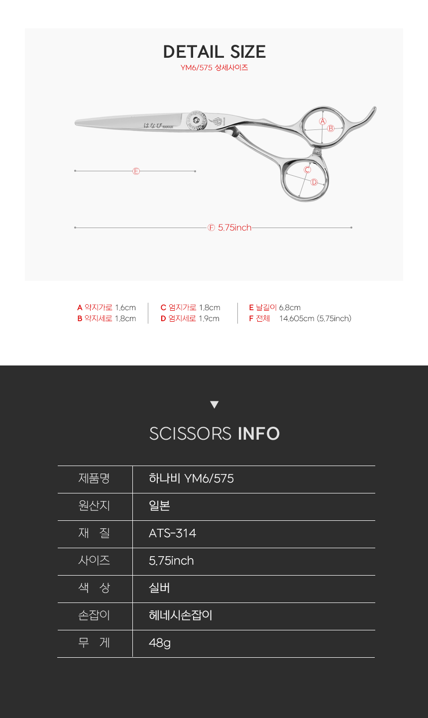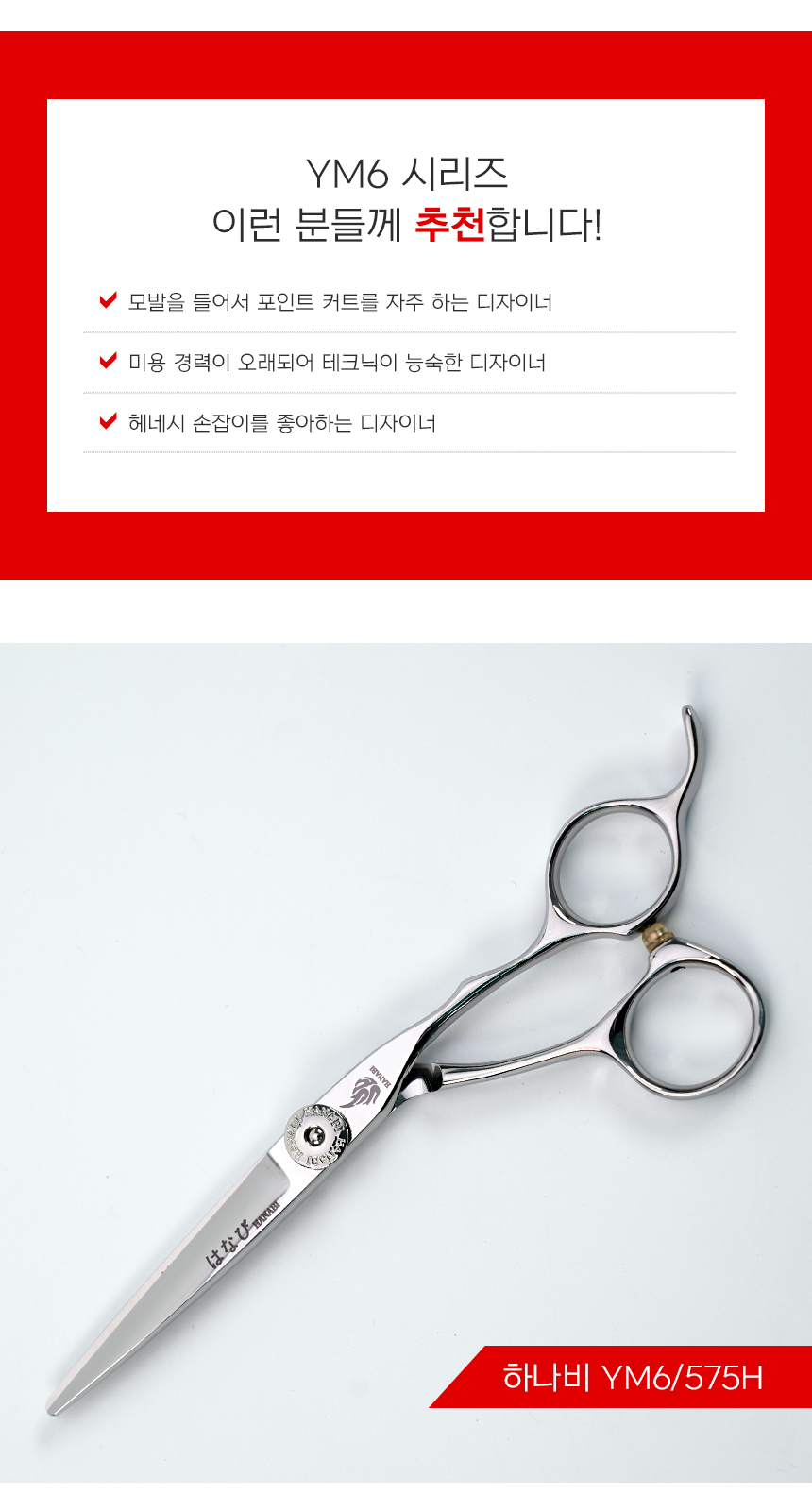 [HANABI YM6/575] 하나비 전문가용 일제 블런트 미용 가위 5.75인치