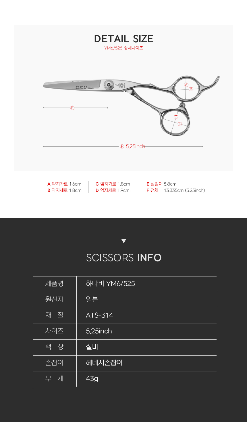 [HANABI YM6/525] 하나비 전문가용 일제 블런트 숏 미용 가위 5.25인치