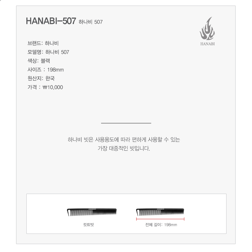 하나비 빗은 사용용도에 따라 편하게 사용할 수 있는 가장 대중적인 빗입니다.