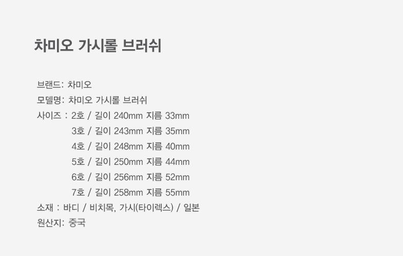 일본 최고급 타이렉스 소재로 제작된 가시롤은 강한 열에도 브러쉬가 변형되지 않으며