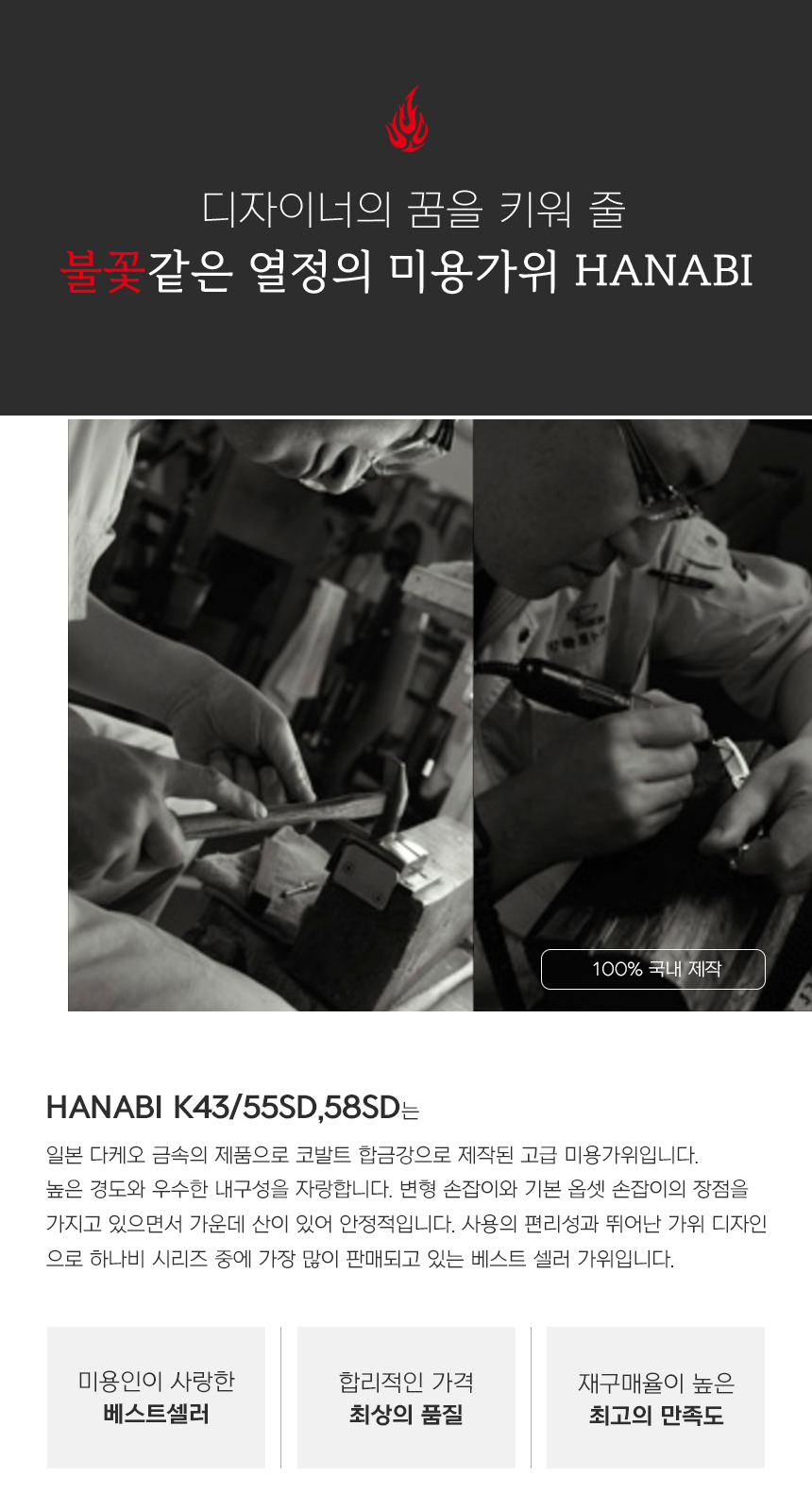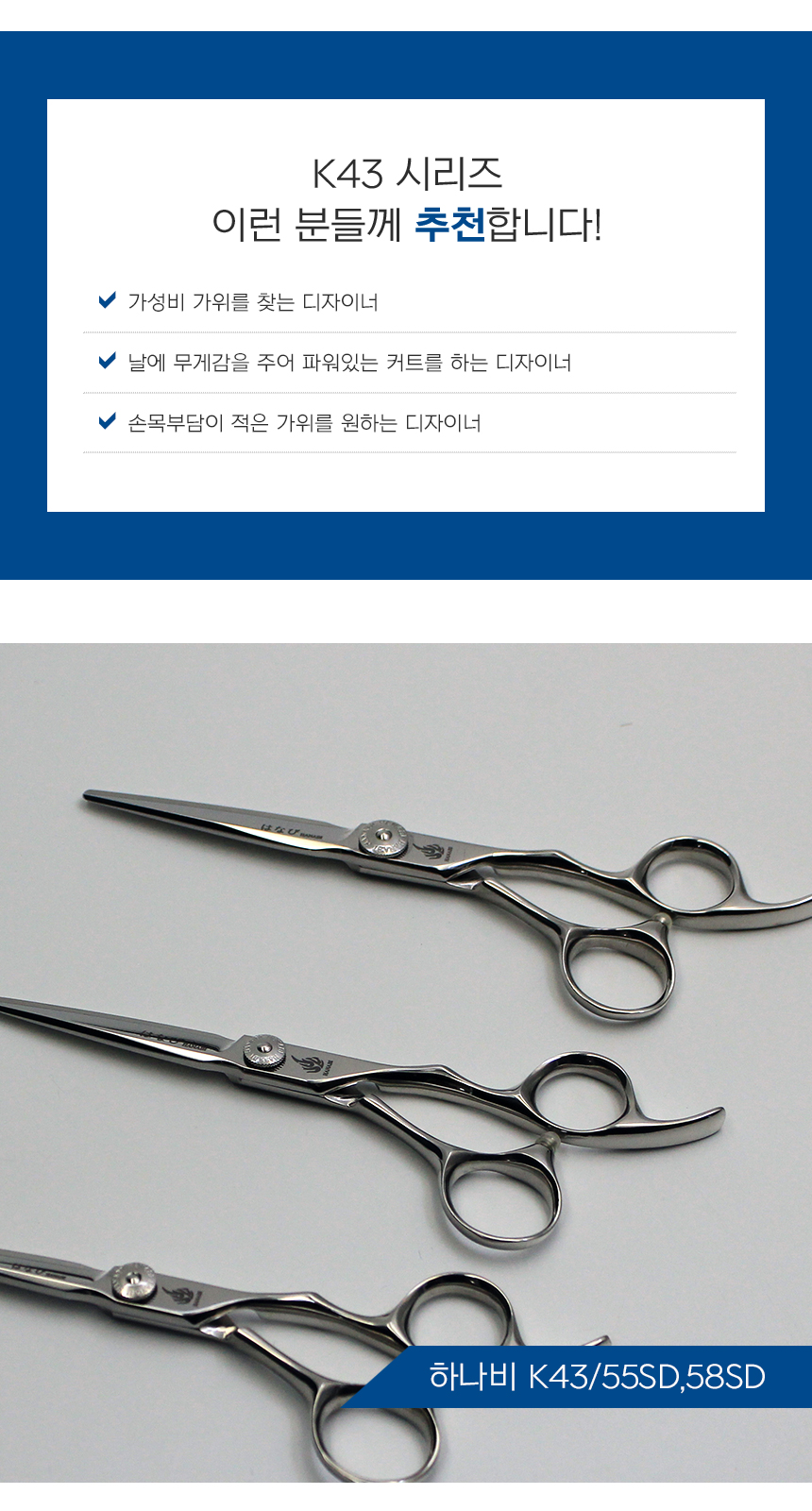 [HANABI K43 SERIES] 하나비 전문가용 블런트 미용가위 5.5-5.8인치