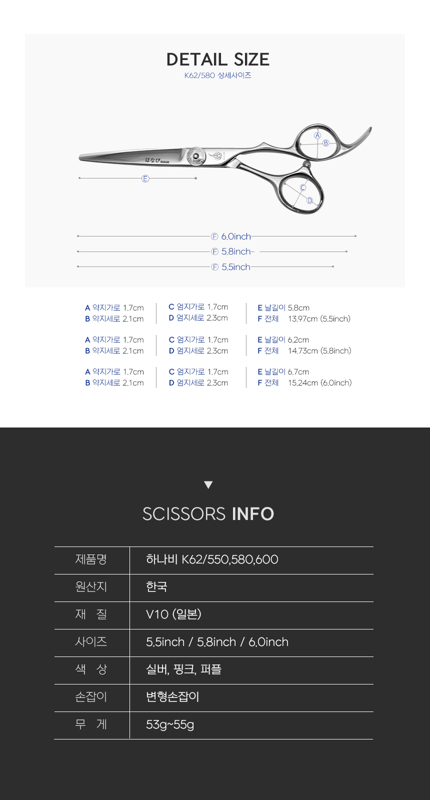 [HANABI K62 SERIES] 하나비 전문가용 블런트 미용가위 5.5-6인치