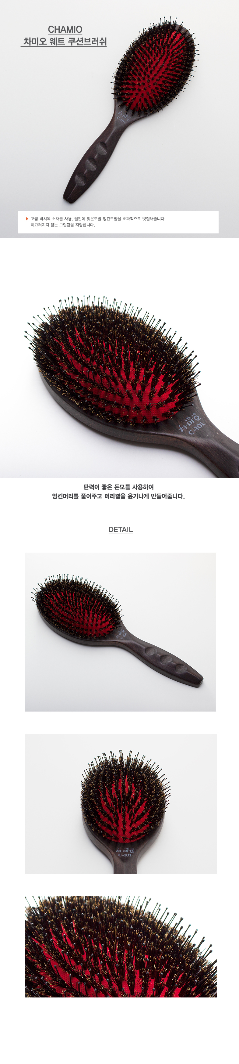 탄력이 좋은 돈모를 사용한 차미오 돈모 쿠션 브러쉬 입니다.