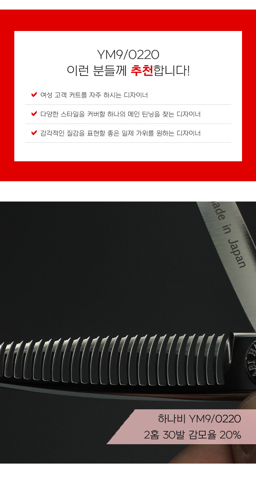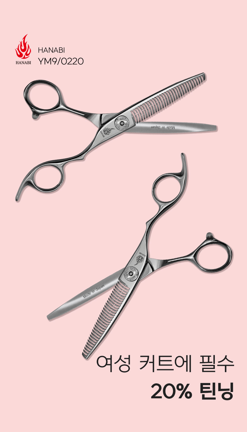 [HANABI YM9/0220] 하나비 전문가용 일제 미용 가위 틴닝 2홈30발(20%)