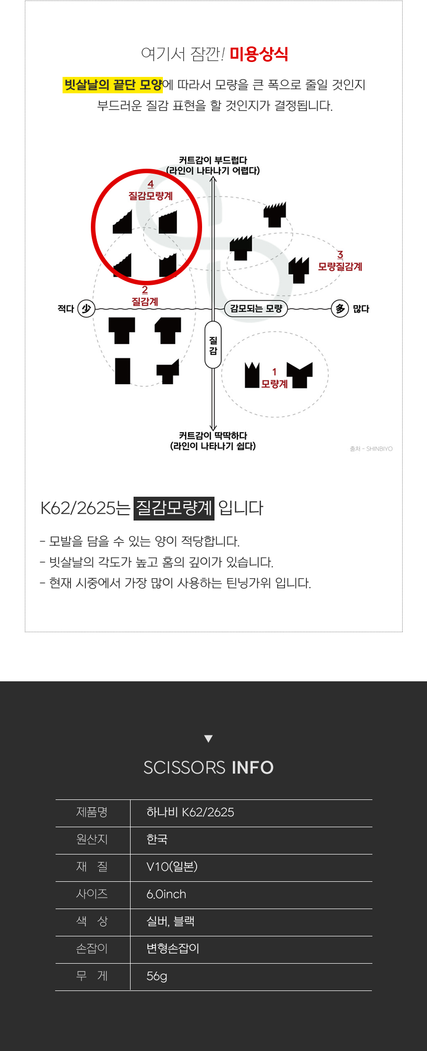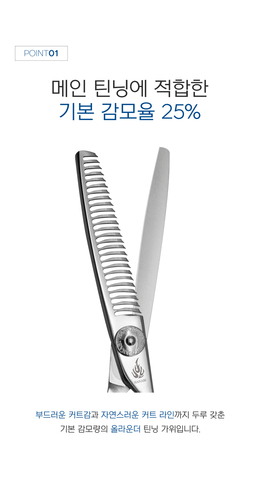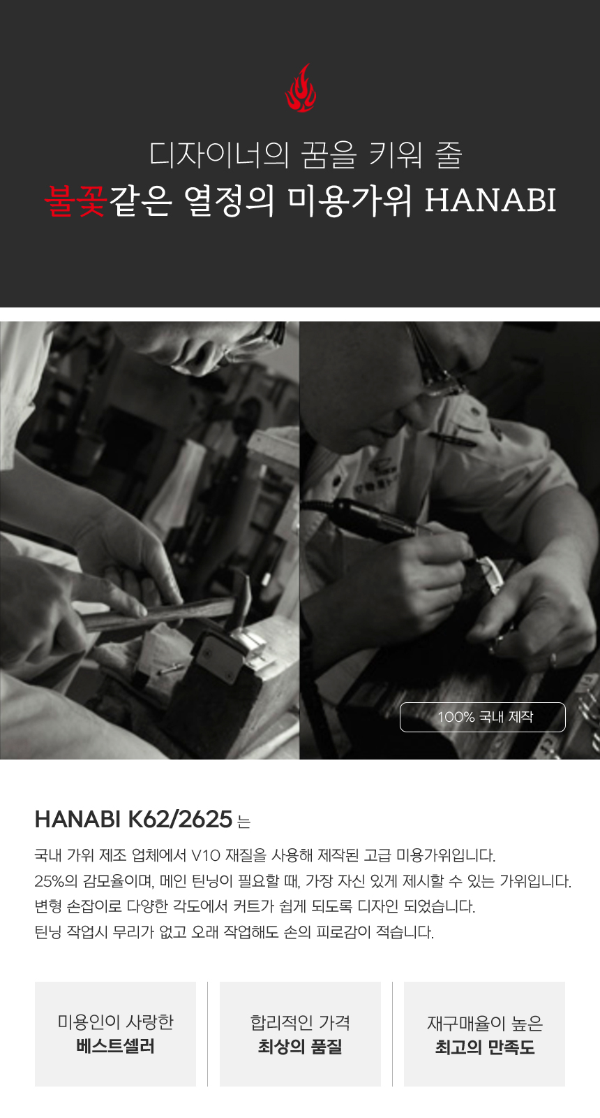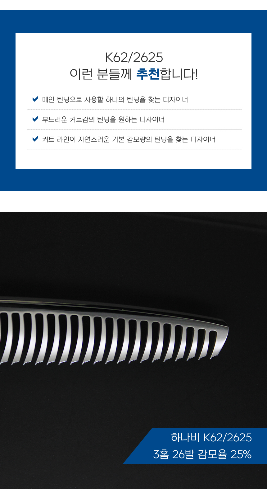 [HANABI K62/2625] 하나비 전문가용 미용 가위 틴닝 3홈26발(25%)