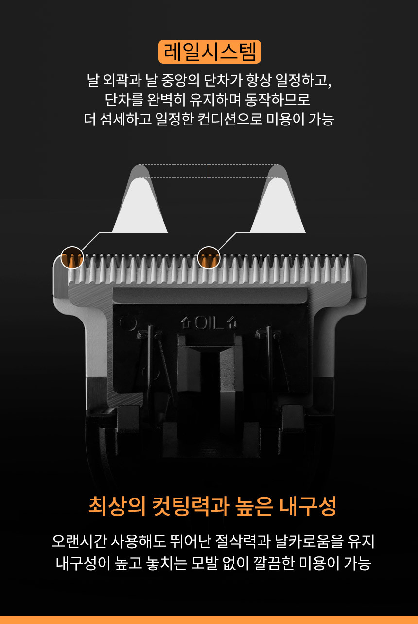 ◆ 날 성능 개선 : 레일로드 기능을 추가함으로써 날이 밀착면을 초과하지 않도록 조정(상처방지)하고 기존보다 더 밀착시킴으로써 완벽하게 잔머리 제거 가능