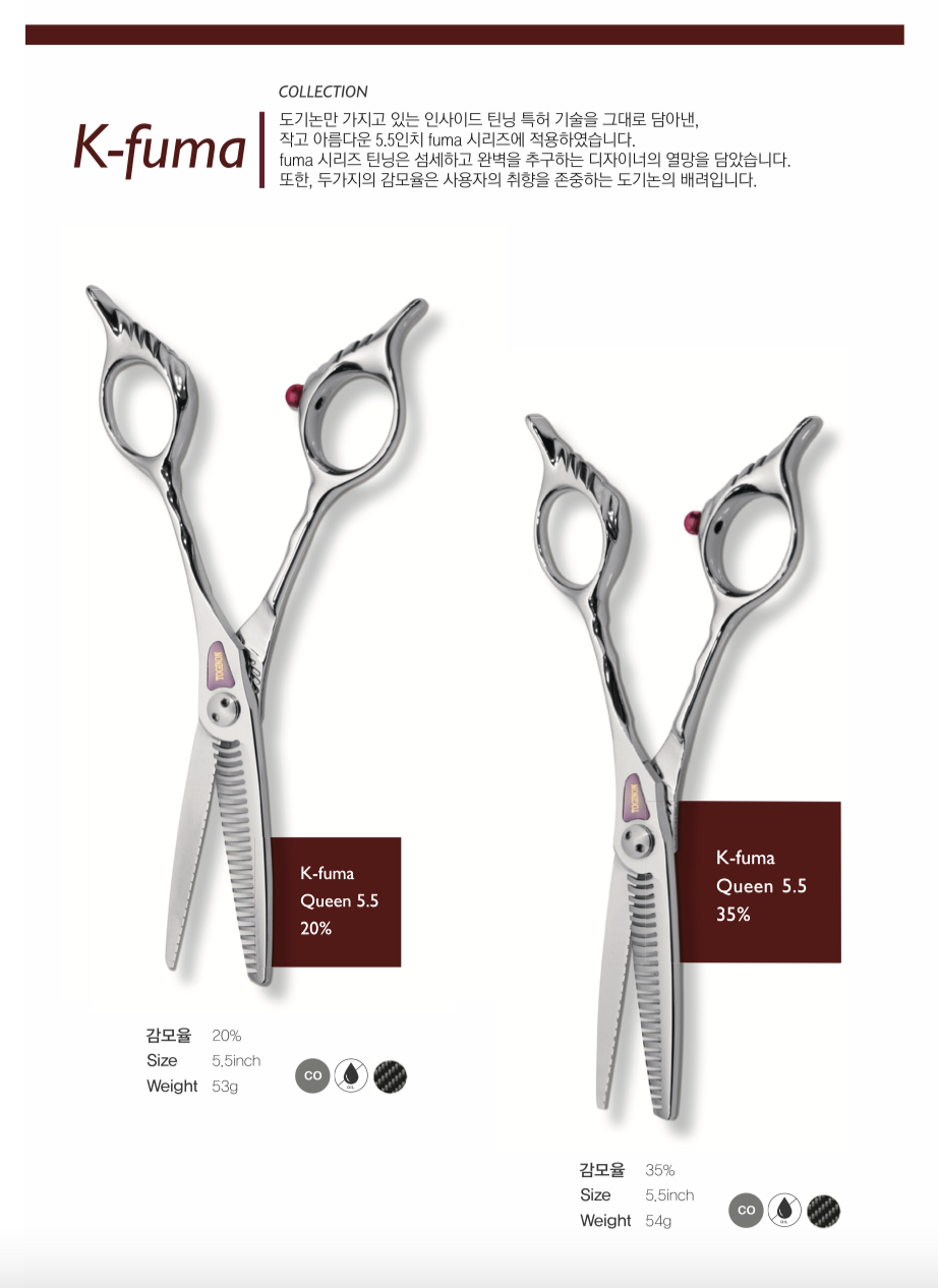 도기논 전문가용 미용가위 틴닝 도기논 푸마 퀸 TOGINON FUMA QUEEN 5.5인치 감모율 20%